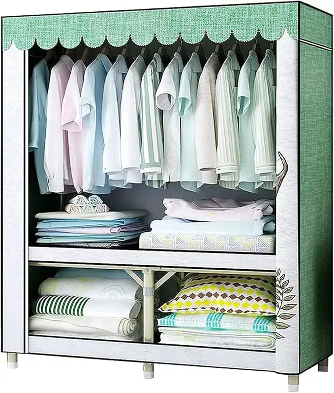 Made with a strong metal frame and durable fabric cover, it ensures stability while keeping your clothes protected from dust and dirt. The outer zipper or roll-up cover keeps everything enclosed and clean.